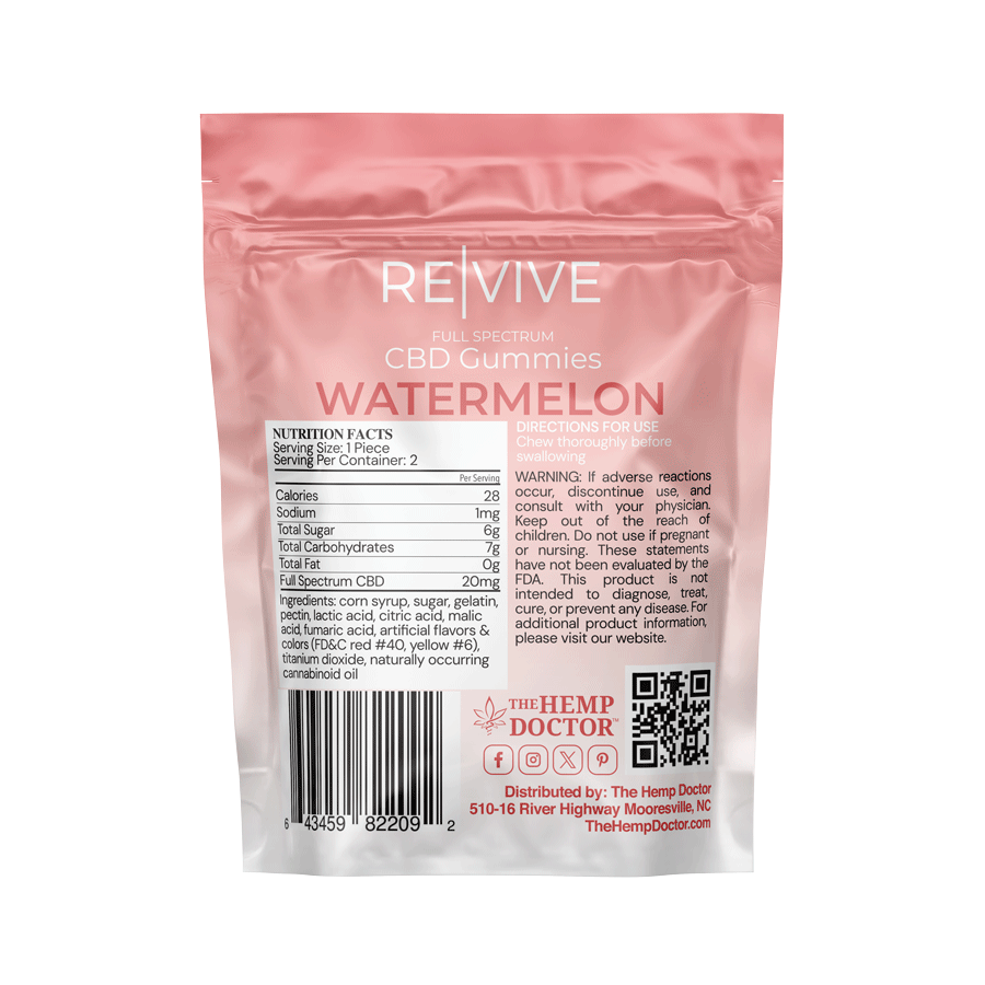 Sweet, refreshing, and packed with full-spectrum goodness, REVIVE Watermelon Gummies are your go-to treat for a flavorful CBD experience. Each ring contains 20mg of phytocannabinoid-rich hemp extract, offering a naturally balanced blend of cannabinoids and terpenes in every bite.